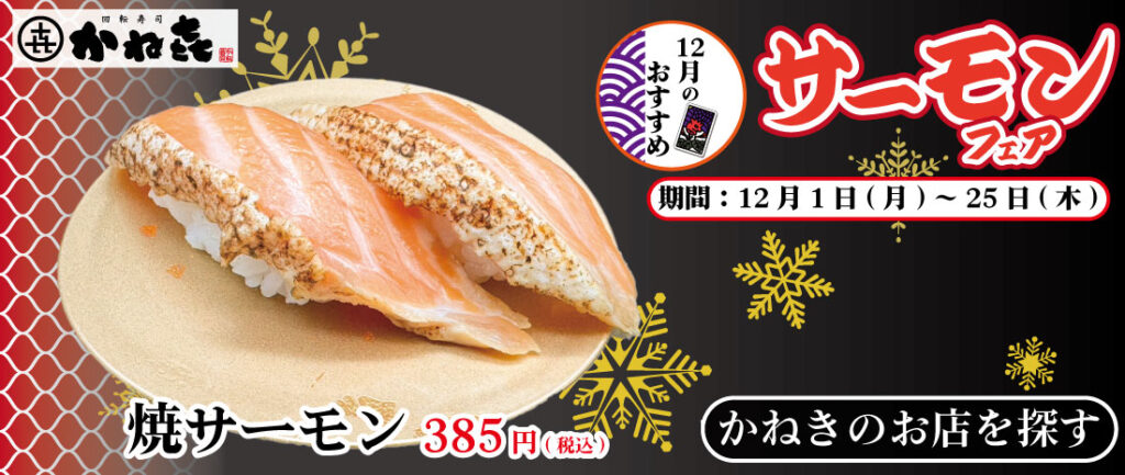 【12月限定】回転寿司かねきの「焼サーモン」が復活!